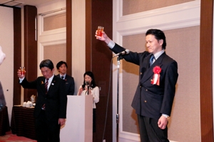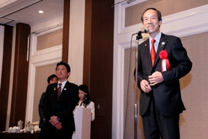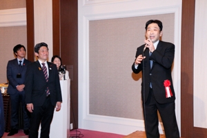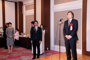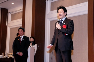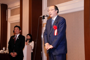 第9回の研究会(懇親会)は、引き続き、芝パークホテルを会場に行いました。今回も当会の顧問である衆議院議員の梶山弘志先生にスピーチを戴き、二島とよじに対して、力強い激励と今後への期待の言葉を戴きました。また、当会の顧問である内閣官房長官の菅義偉先生は、公務で欠席となりましたが、メッセージをお寄せ戴き、二島とよじに、激励と期待の言葉を戴きました。